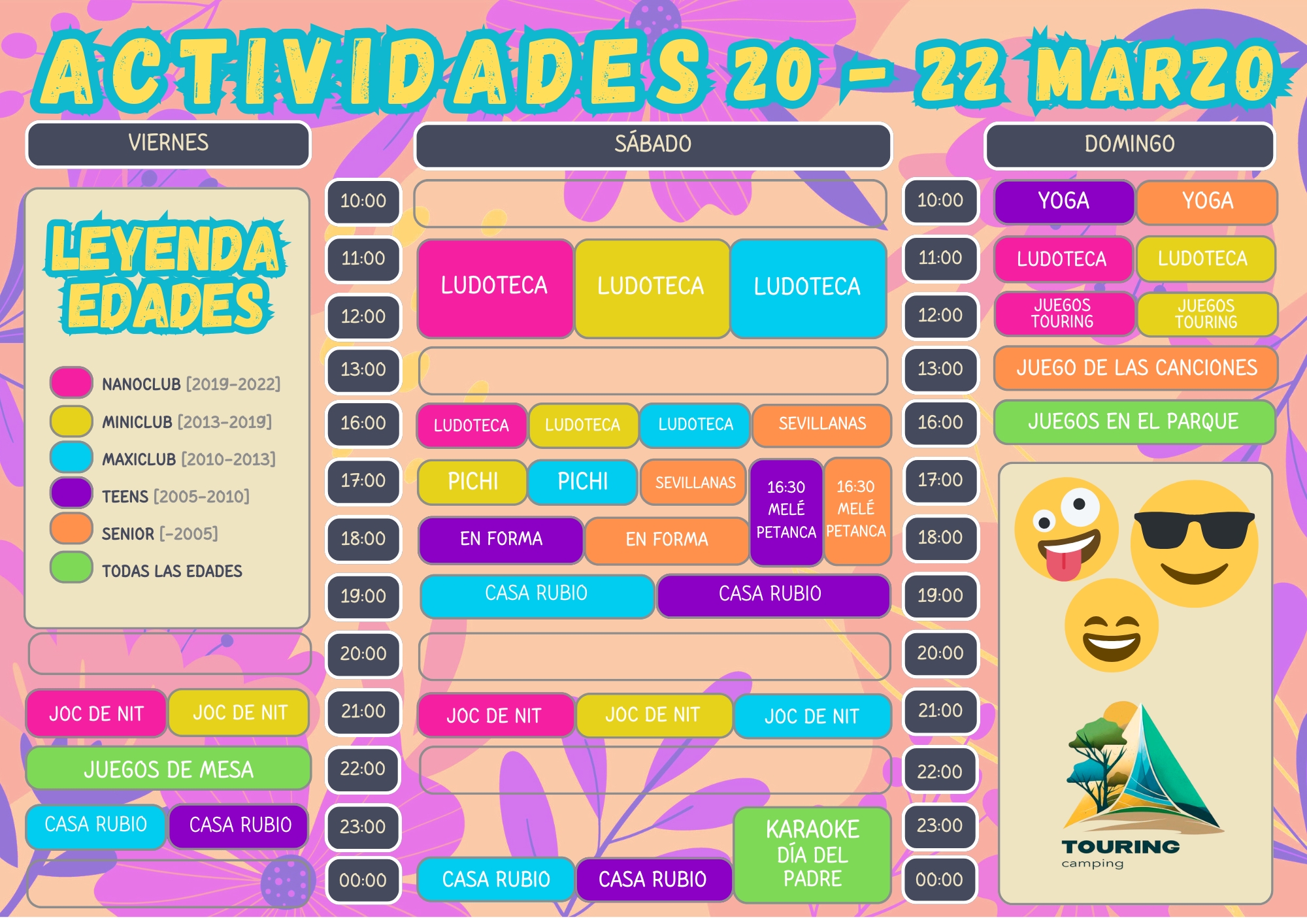 Diumenge 5: tornejos, la Mona, mini disco i Quiz Night.