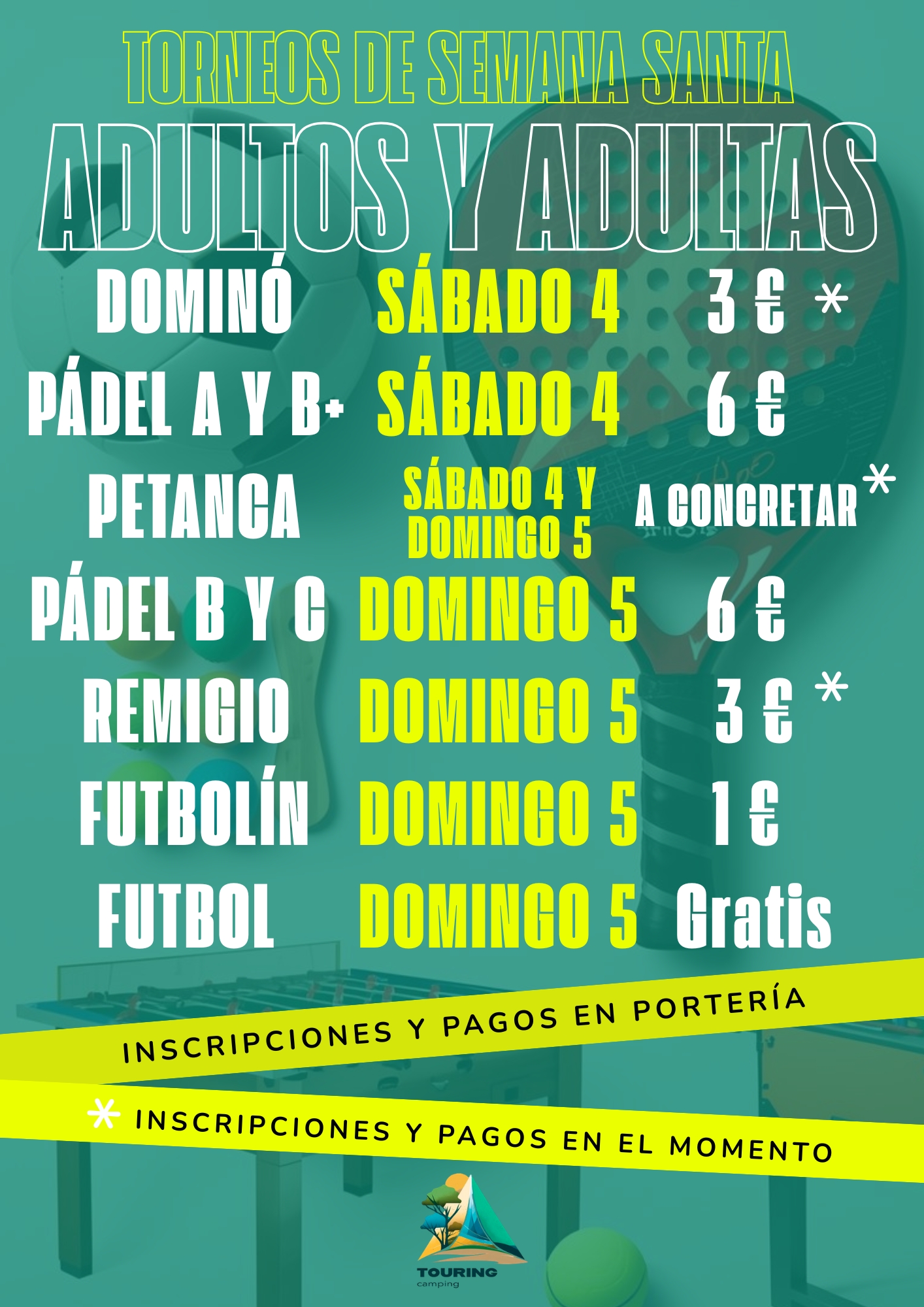 Tornejos de pàdel, petanca, futbolí i futbol.