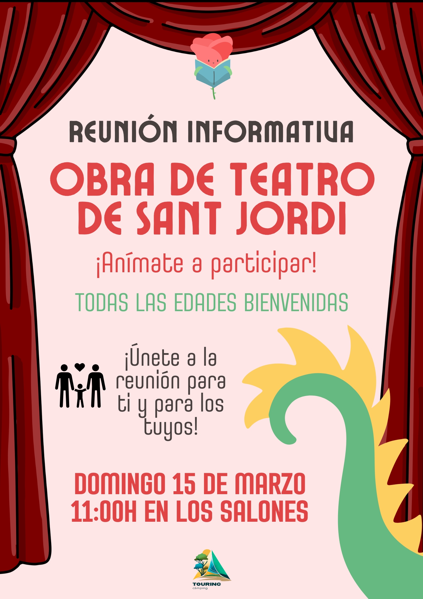 We invite everyone who would like to take part in the Sant Jordi theatre play, as well as parents or relatives of children who wish to participate, to attend this information meeting. We will explain how the activity will work and how people can take part in the play.